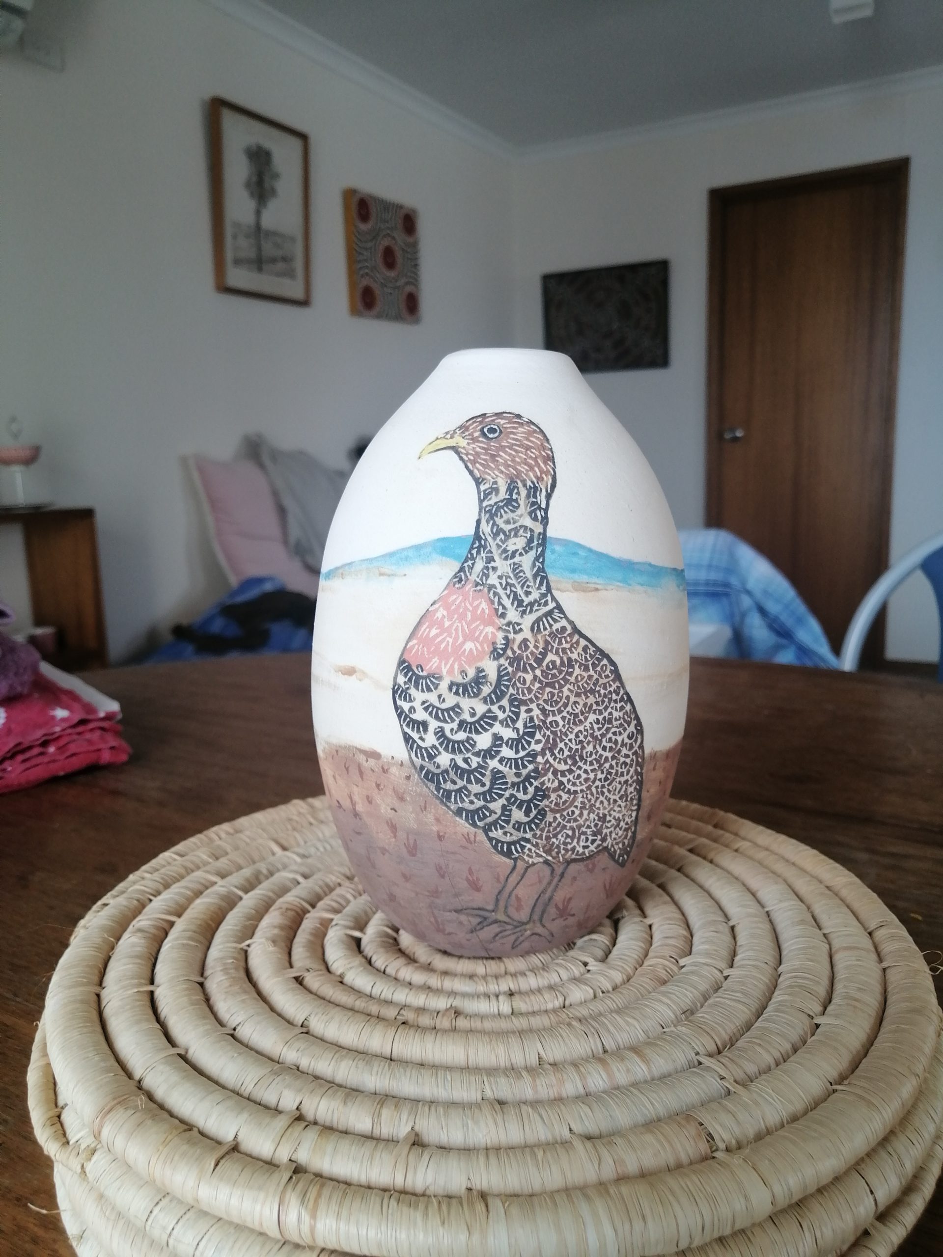 I don’t have any particular style, but I’ve mostly been doing underglaze painting on wheel-thrown vases since I arrived. I first tried pottery at a studio in Taipei, Taiwan, starting out with handbuilding. It took me ages to get the hang of the wheel, and I still throw them a bit heavy! I’m still interested in handbuilding and I’ve been learning more about some of the native flora and fauna around Cairns.